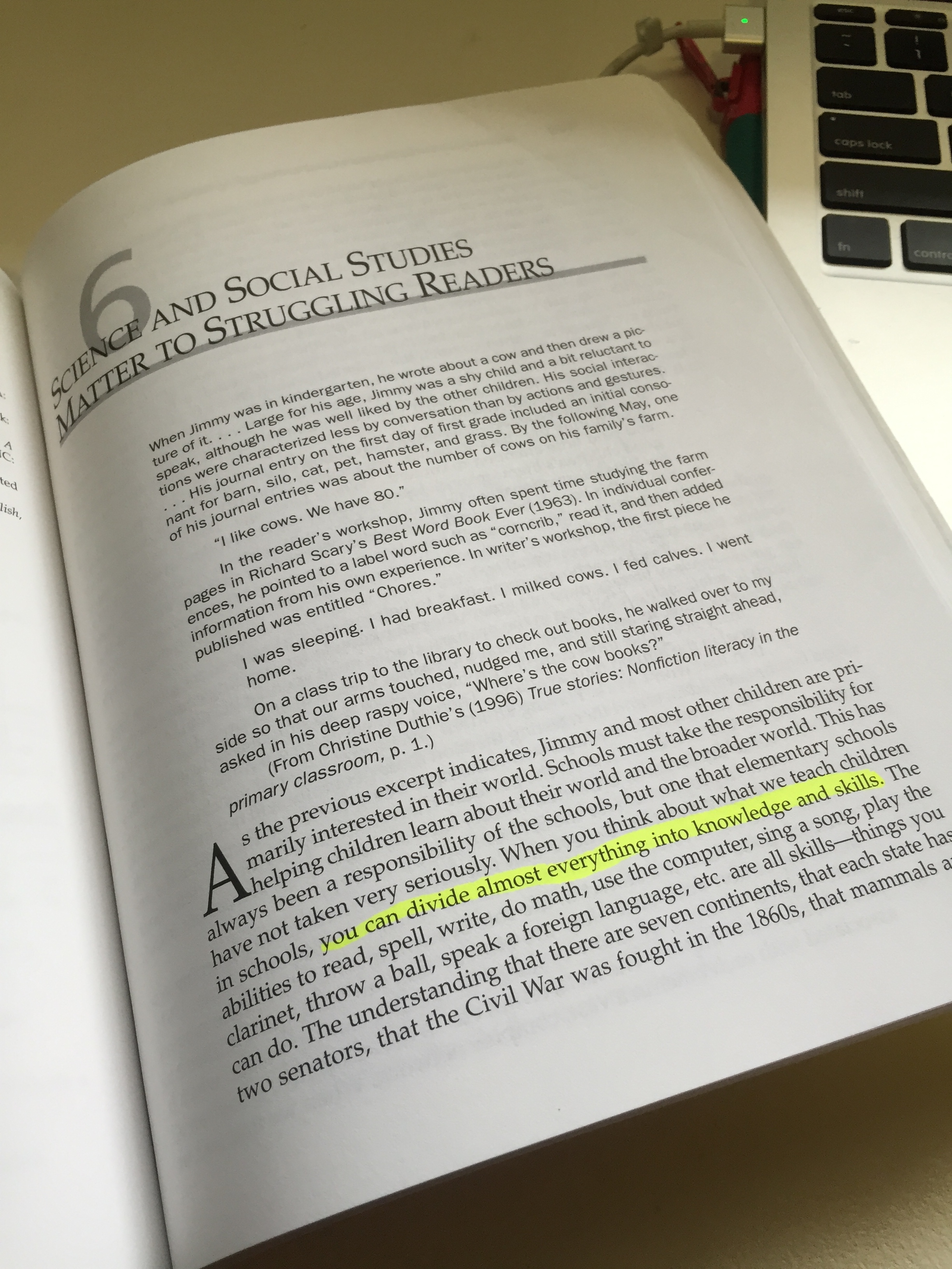 Hello again! We’ve made it to chapter six in Classrooms That Work! Discussed briefly in the previous chapter was incorporating subjects such as Science and Social Studies into reading. Here, our chapter is titled “Science and Social Studies Matter to Struggling Readers” and follows the path one would expect; talking about the importance of subjects other than English for struggling students.