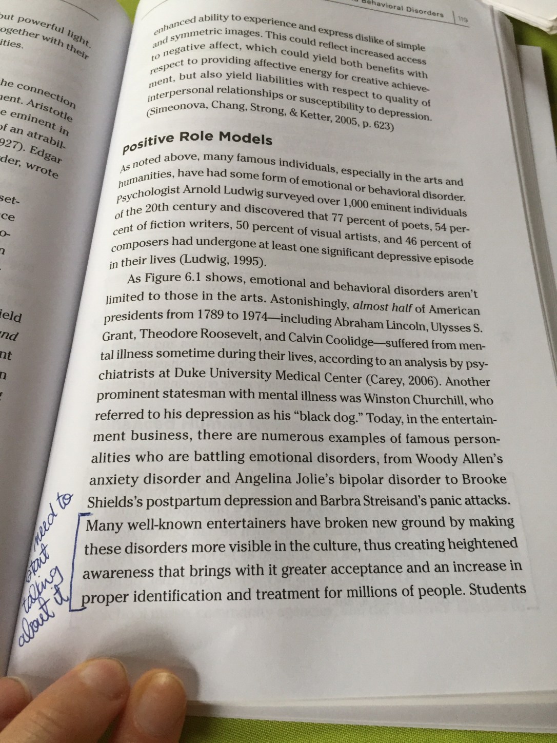 This chapter was a challenge for me because there are just so many various emotional and behavioural disorders that to lump them all together in one small chapter is no small feat.